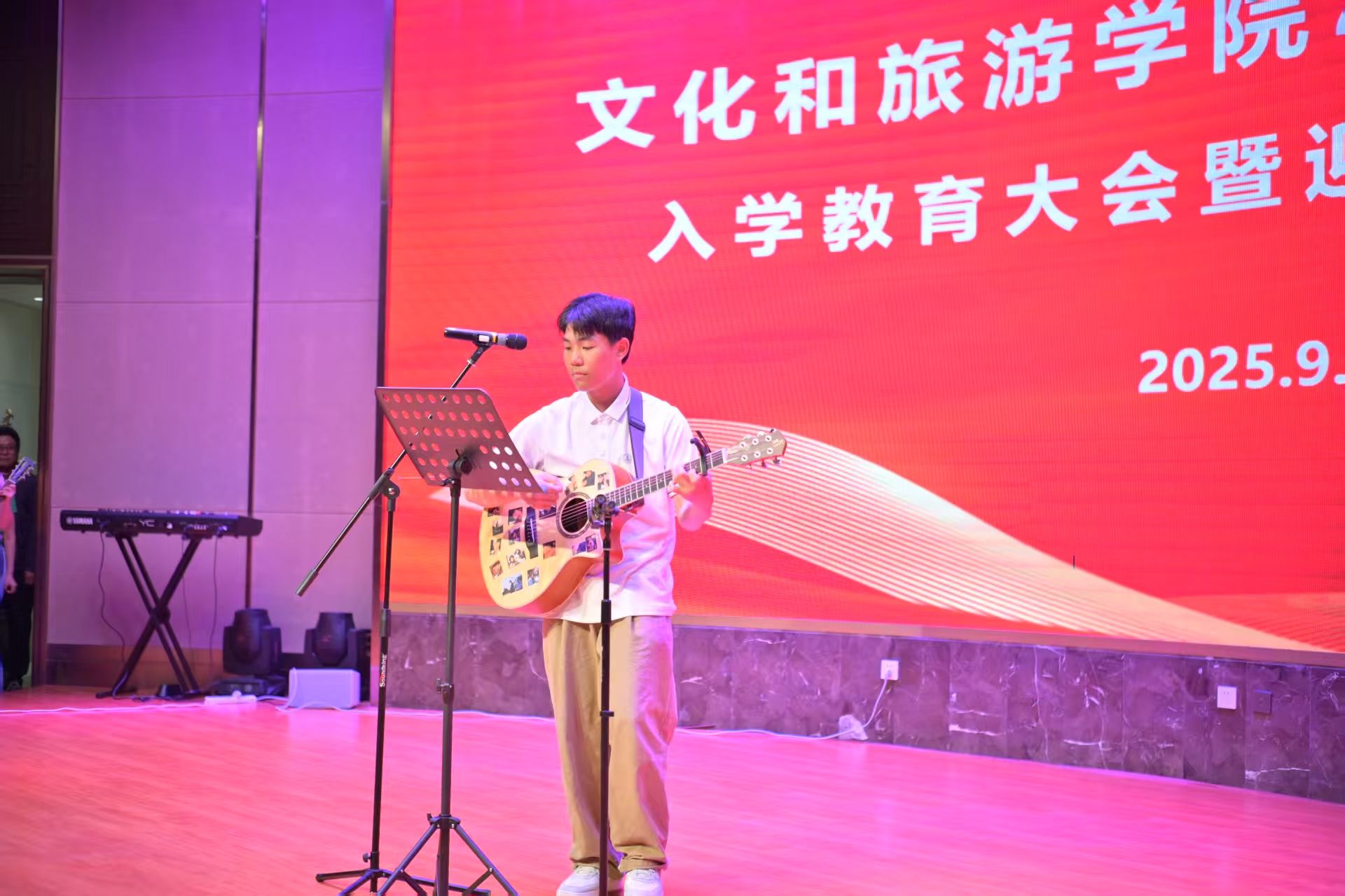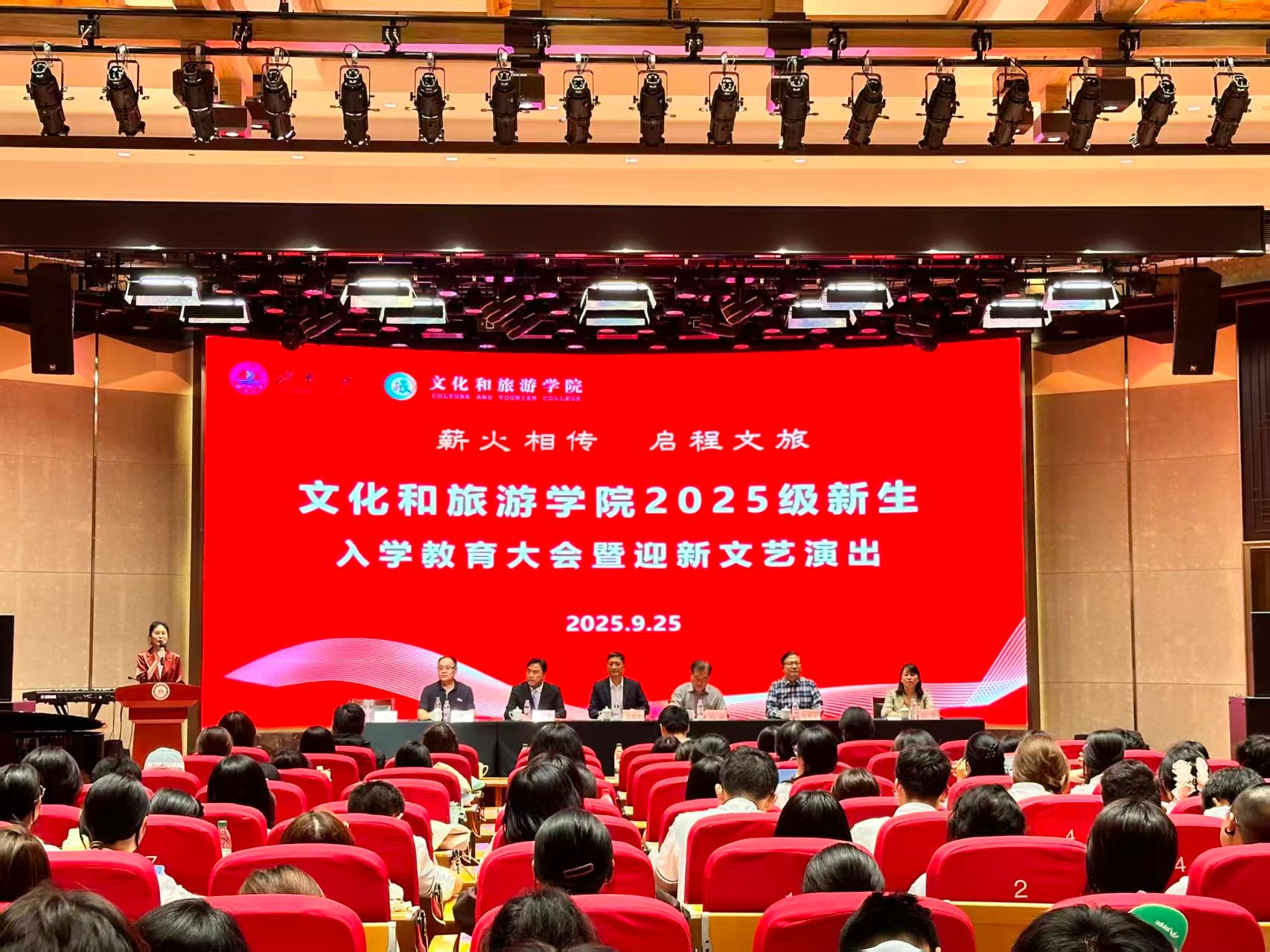 9月25日下午,世俱杯买球入口“薪火相传 启程文旅”2025级新生入学教育大会暨迎新文艺演出在济南老年人大学报告厅隆重举行。世俱杯买球入口全体党政领导班子成员,各系教师代表、全体辅导员、新生班主任以及2025级全体本科生和研究生共同参加了这场青春盛典。