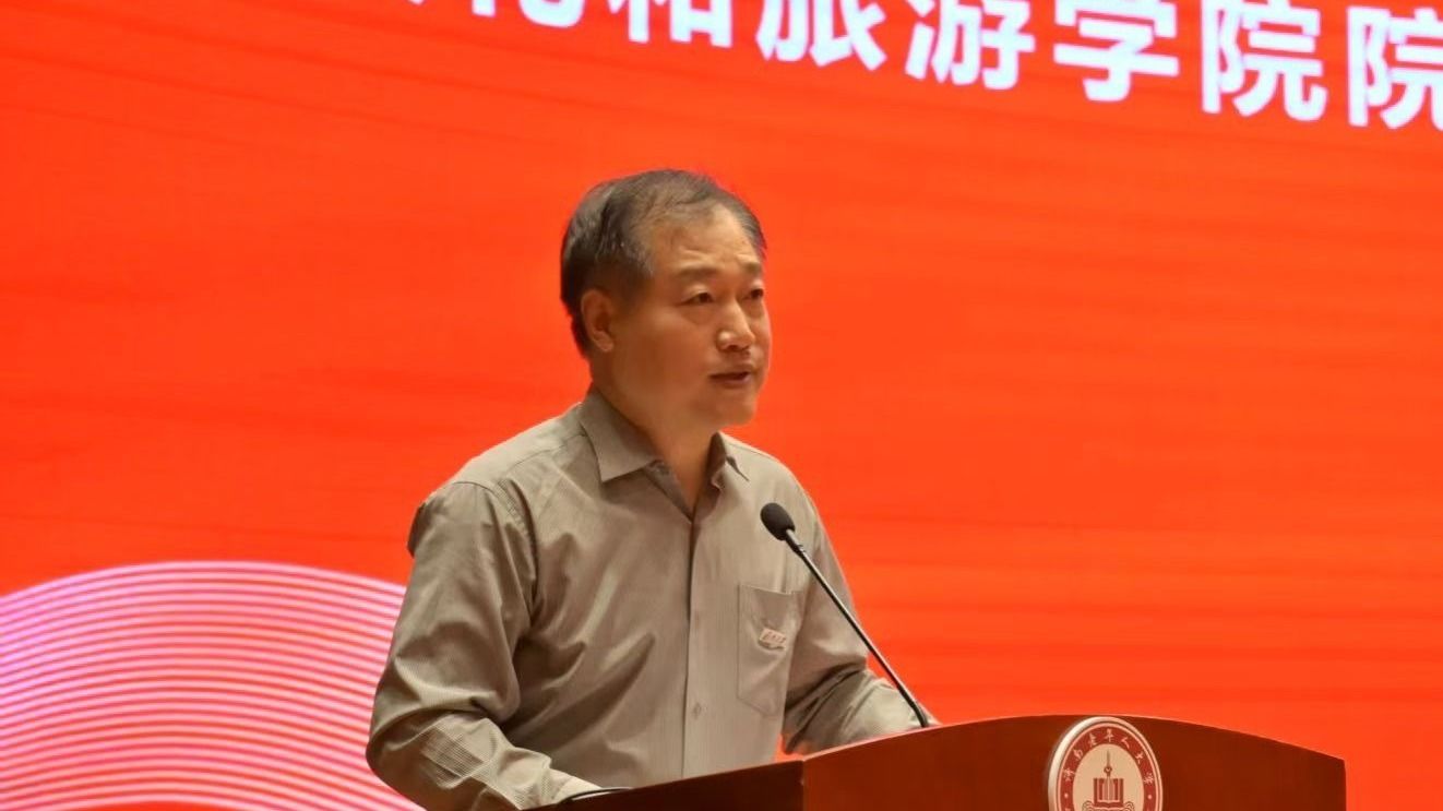 随后,黑伟钰先生结合自身数十年的行业深耕经历,深情阐述了服务与文化的真谛。他强调,服务是成就他人、照亮自己的崇高事业,文化是融入细节的生活美学。他鼓励新生树立职业自信,弘扬工匠精神,在未来文旅融合的大潮中展现自身担当。