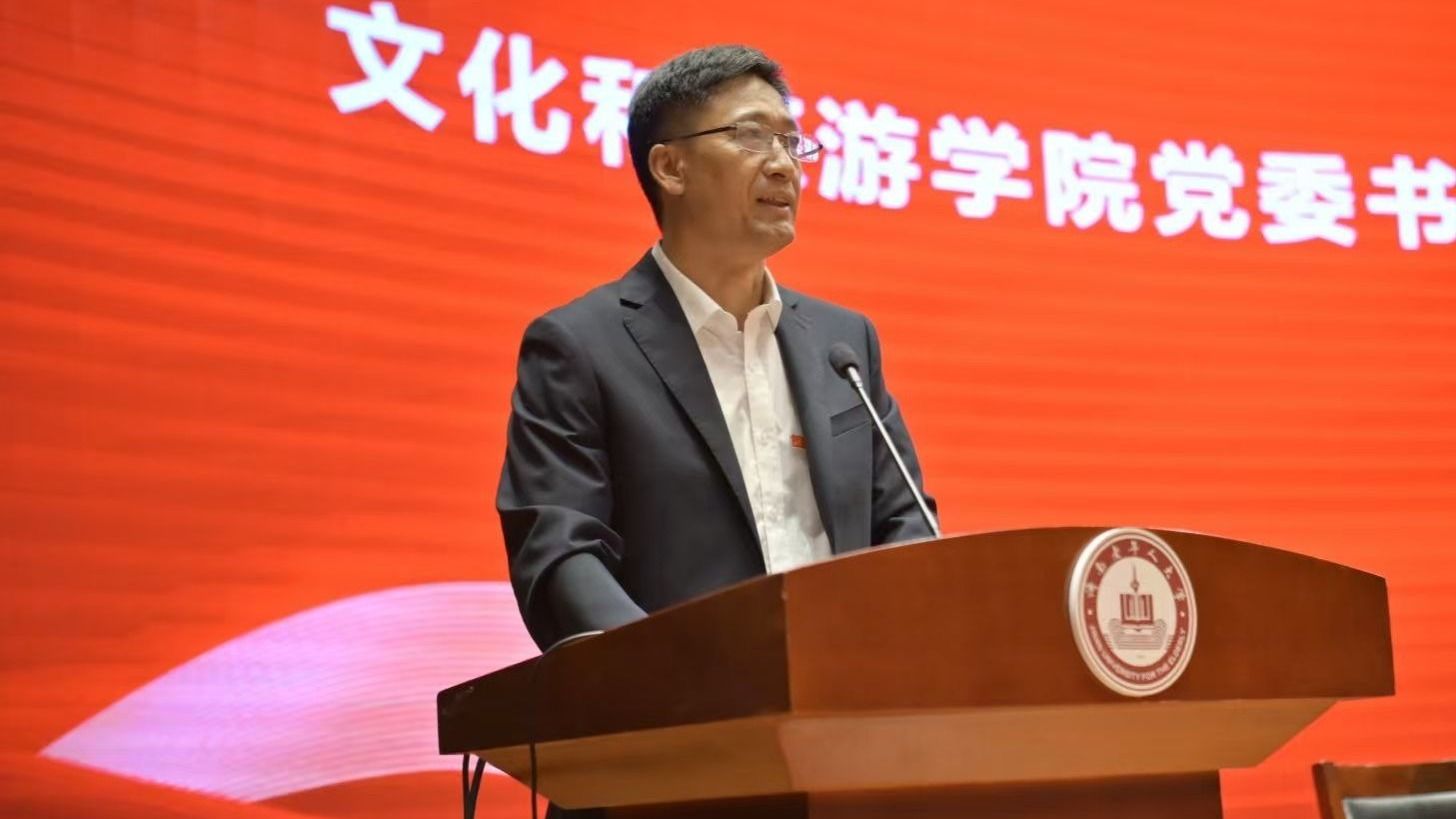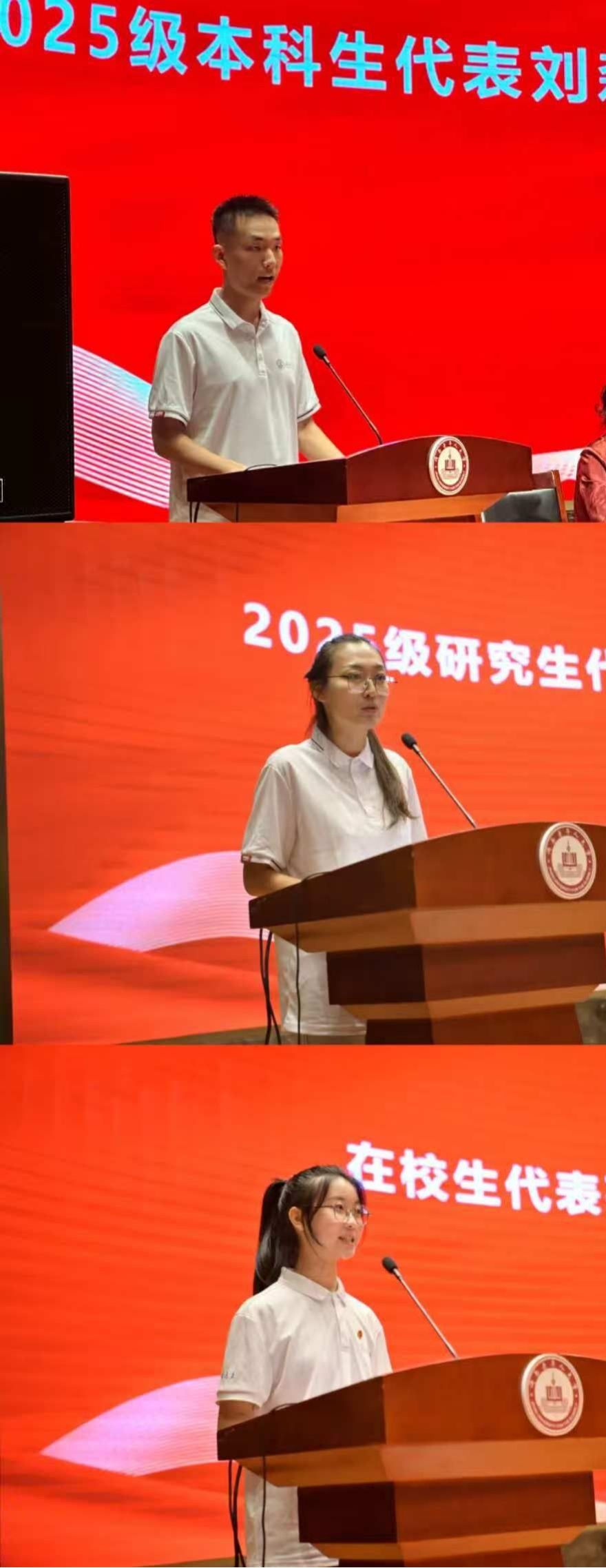 本科生新生代表刘森洋和研究生新生代表李白雪分别发言,在发言中他们表达了将倍加珍惜宝贵的学习机会,以主动探索的精神、踏实严谨的学风和敢于突破的勇气,潜心治学,砥砺前行。不负时代韶华,不负师长期待,在未来的学习生涯中展现新一代青年的风采,努力成长为有理想、有担当的“文旅人”。在校生代表、国家奖学金获得者孙梦彤,向学弟学妹们分享了在校学习生活的经验与体会。她以“拥抱变化,收获成长”为主题,结合自身经历,从课程学习、社团活动、社会实践、时间管理等方面给出了实用建议。她鼓励新生们勇敢尝试,不怕失败,在探索中找到自己的热爱;学会平衡,张弛有度,在忙碌中保持身心健康;珍惜同窗情谊,互帮互助,共同进步。