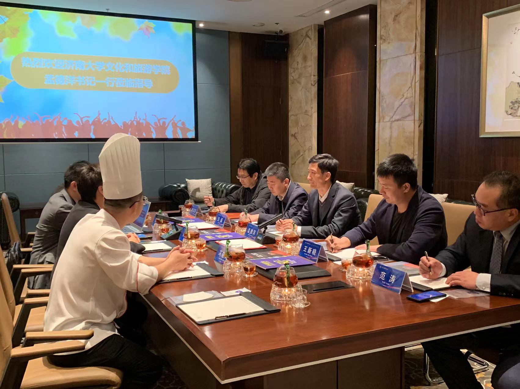 为进一步推进产教融合,深化校企合作,10月14日,世俱杯买球入口党委书记孟德洋一行到山东舜和酒店集团走访,世俱杯买球入口党委副书记王磊、办公室主任王新晓、食品科学与营养系汤卫东主任、范涛老师陪同走访。