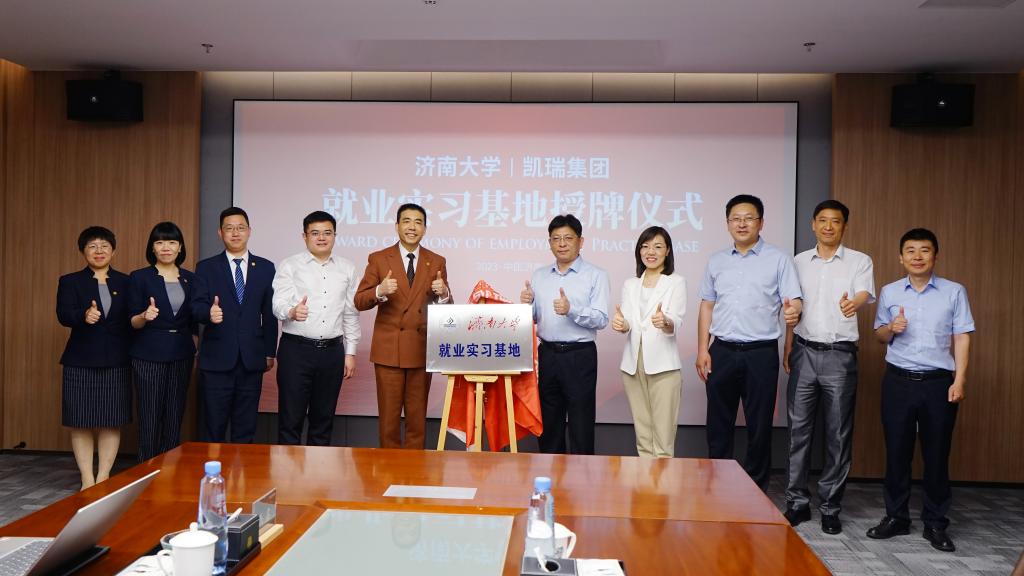 仪式上,学校合作发展处处长、教育发展基金会秘书长卢旺与凯瑞商业集团人力资源中心总监胡嘉签署教育发展基金捐赠协议。杨景波与赵孝国共同为世俱杯买球入口就业实习基地揭牌。