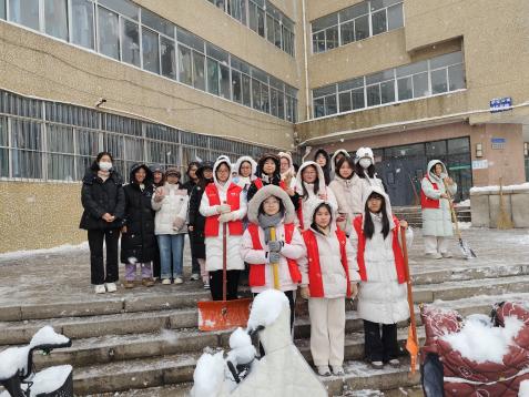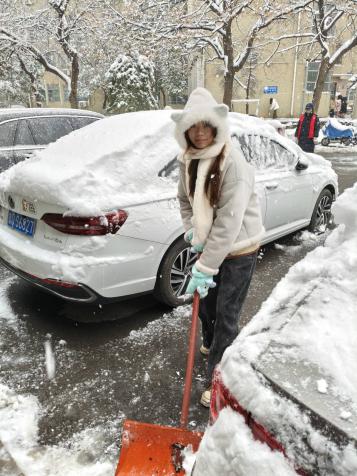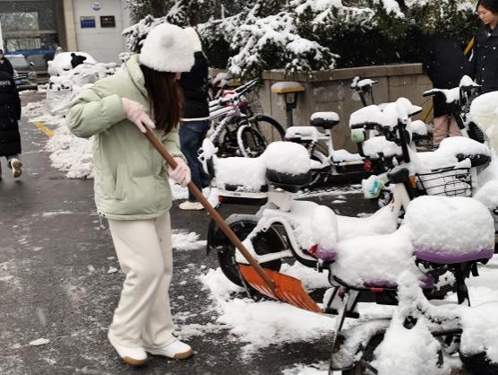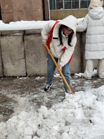 双手冻得通红,就搓一搓再接着干;额头渗出汗珠,便抹一把继续冲锋。皑皑白雪中,他们忙碌的身影来回穿梭,构成了冬日校园里最动人的画面。路过的师生纷纷驻足点赞,不少人拿出手机记录下这暖心瞬间,感叹道:“新生们太给力了,这就是济大的青春力量!”