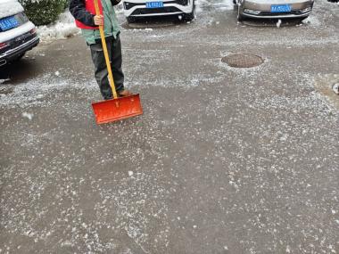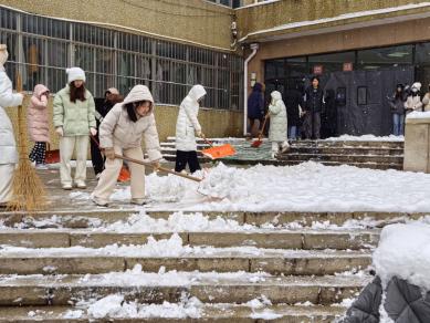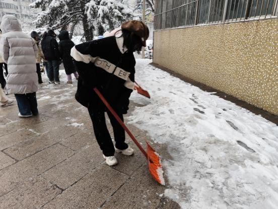 近两个小时的持续奋战,成效显著 —— 原本被积雪覆盖的道路逐渐显露,一条条干净通畅的 “暖心路” 在校园里延伸,所有重点通行区域的积雪、积冰被彻底清扫干净,为师生出行筑牢了安全防线。