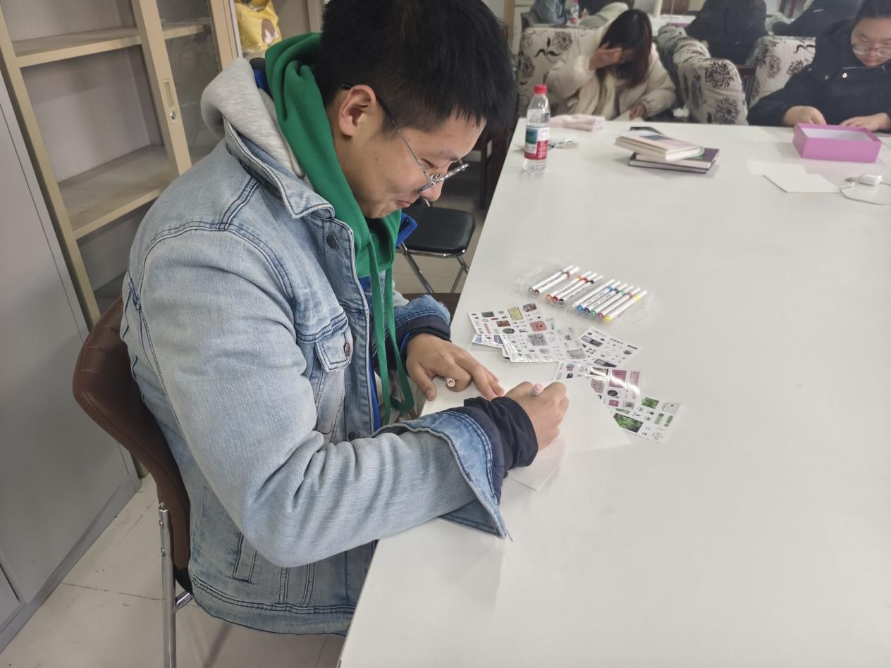 在最后的自由活动时间,同学们可根据兴趣选择拼图、手账创作、书写字帖等多种形式进行创意表达。通过动手实践,将学业与生活中的无形压力转化为有形的作品,在专注创作的过程中实现情绪的梳理与释放。