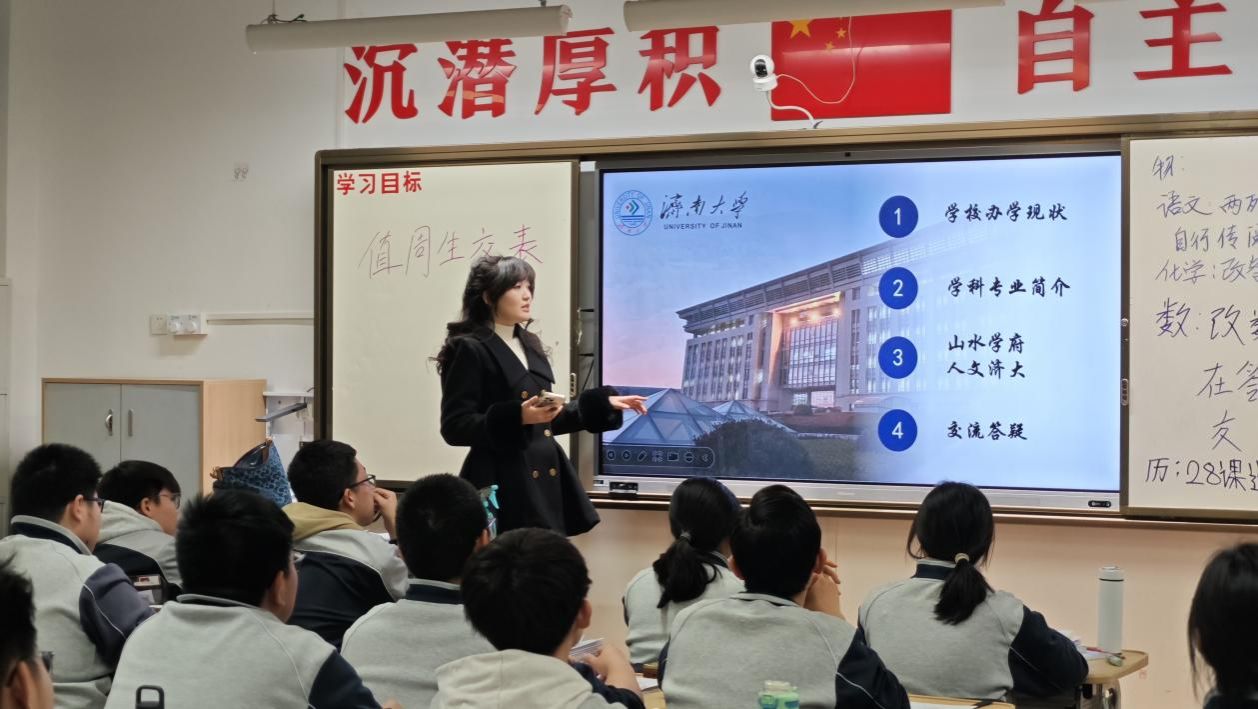 本次活动因年级而异、因需求而设。1月29日下午,侯姝君走进高一、高二年级教室,通过十五分钟的微宣讲,以自制的校园宣传视频和PPT,向学弟学妹们展示了世俱杯买球入口的办学底蕴、学科实力与招生情况。她将数据融入自己的大学成长体验,分享了图书馆的伏案时光、社团活动的欢声笑语,让济大生活变得真实可感。互动环节中,她耐心解答同学们关于专业选择、校园生活的疑问,并留下联系方式以便后续交流。